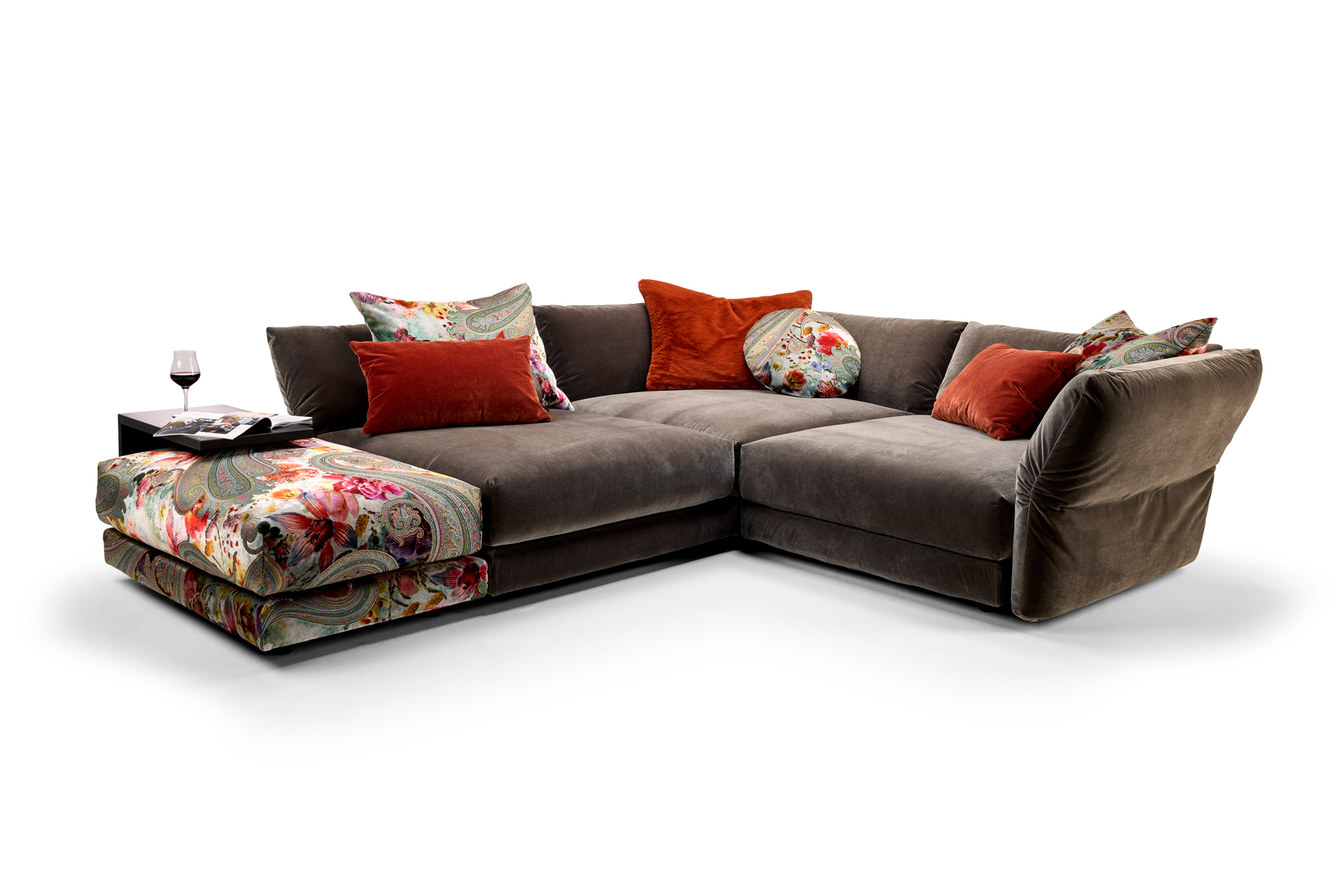 THE LUXURY RENDEZVOUS. THE LUXURIOUS DESIGN ELEMENTS OF OUR BULLFROG COLLECTION ALLOW WONDERFUL CUSTOM CONFIGURATIONS. ELEMENTS WITH FLEXIBLE BACK AND ARM SECTIONS AND A LOOSE-FITTING SEAT CUSHION, ALL IN SUPERSOFT COMFORT. THE RICH SELECTION OF TEXTILES OFFER MANY POSSIBILITIES FOR INDIVIDUAL DESIGN. UNIQUE PIECE PRODUCTION.