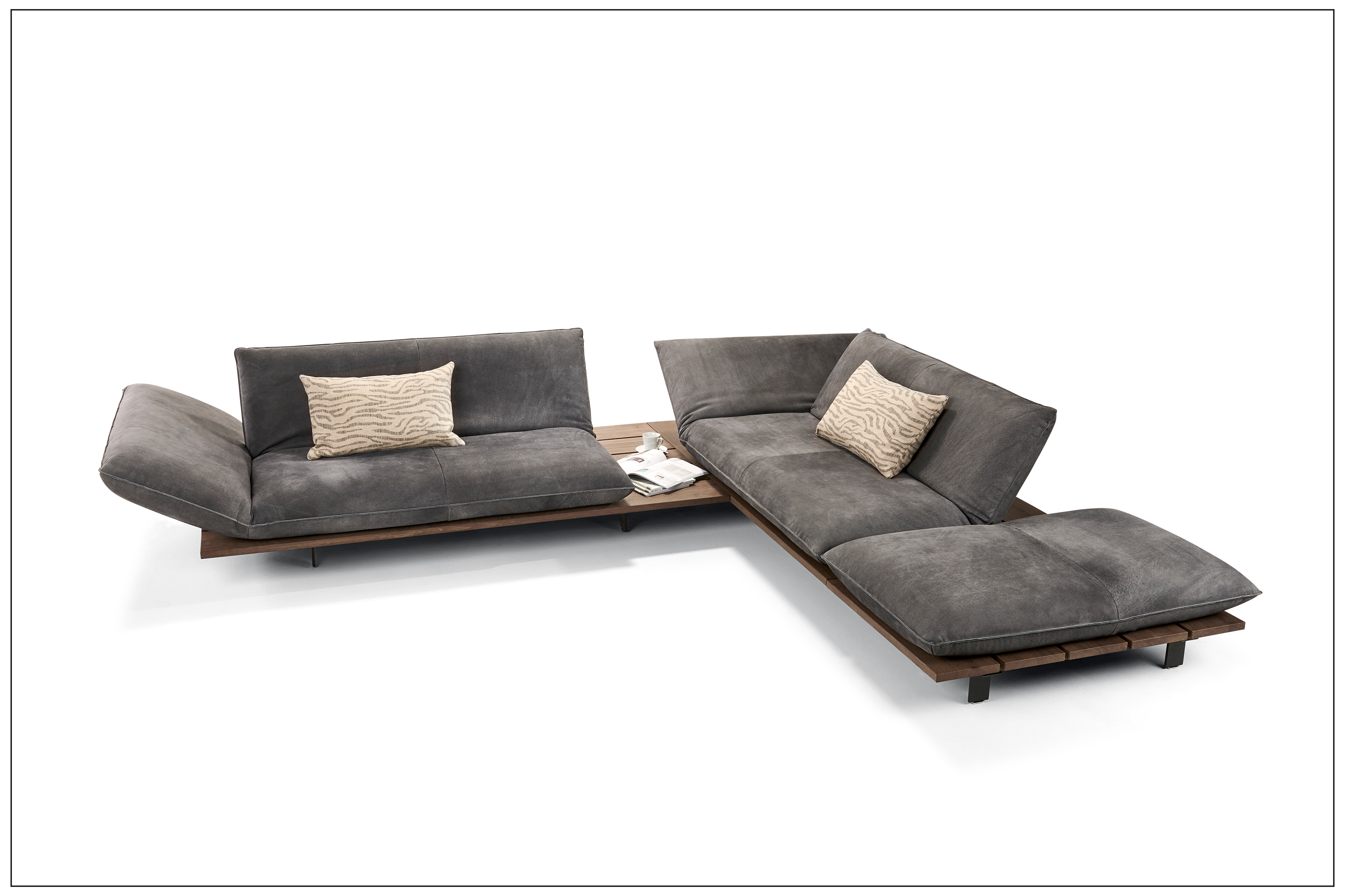 READY TO RELAX. DIE LEICHTIGKEIT DES SEINS. LEICHTE, KLARE LINIE MIT VARIABLEN FUNKTIONEN. ELEMENTE MANUELL ODER MOTORISCH BEWEGBAR. AUSSERGEWÖHNLICHE ÄSTHETIK, GEPRÄGT DURCH EIN MASSIVES PLATEAU AUS EDELHOLZ. EMOTIONALE LEDER- UND FEINE STOFFVARIANTEN. INDIVIDUELLE TYP- UND NAHTAUSFÜHRUNGEN. ALS UNIKAT GEFERTIGT. AUCH ALS OUTDOOR VARIANTE ERHÄLTLICH.