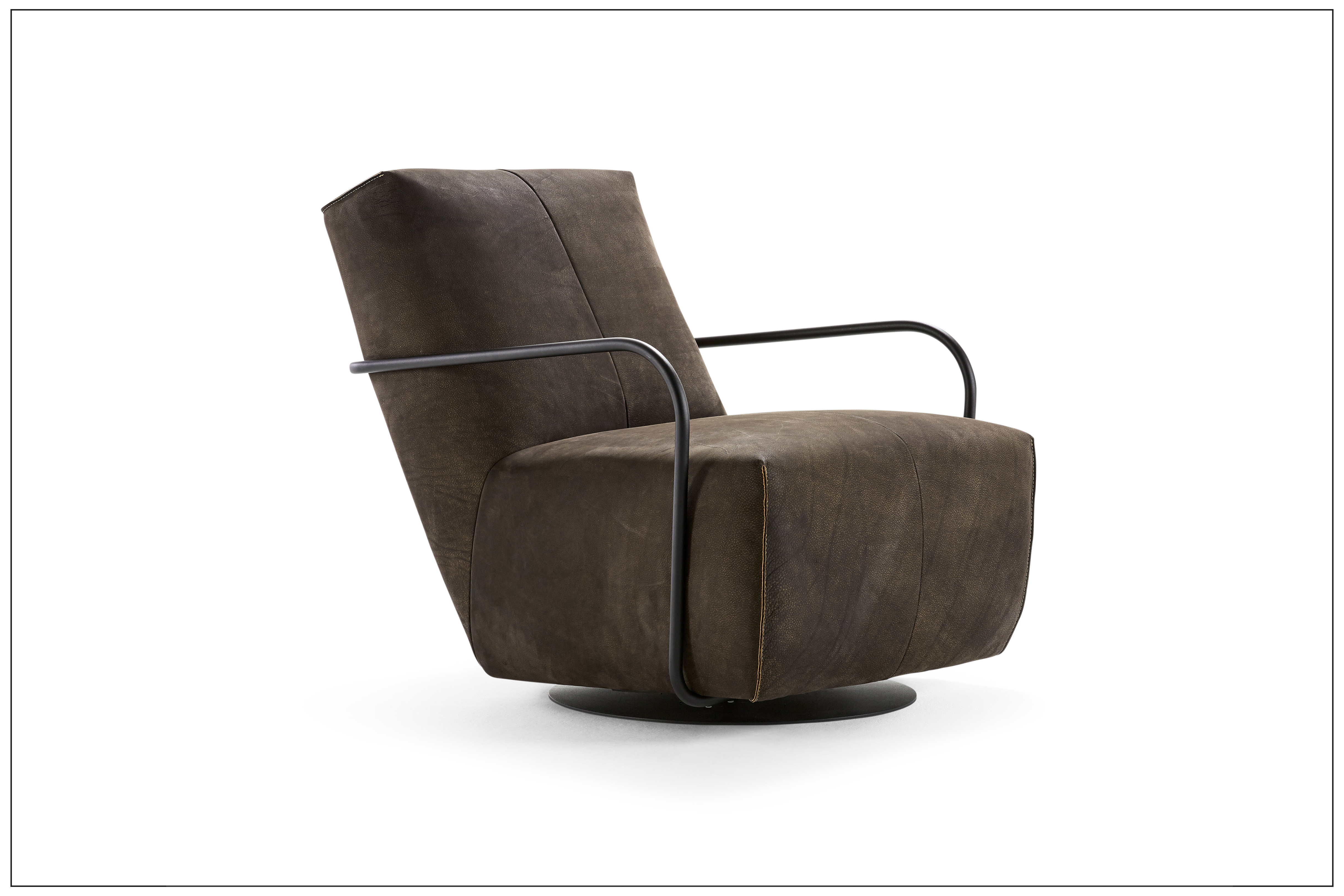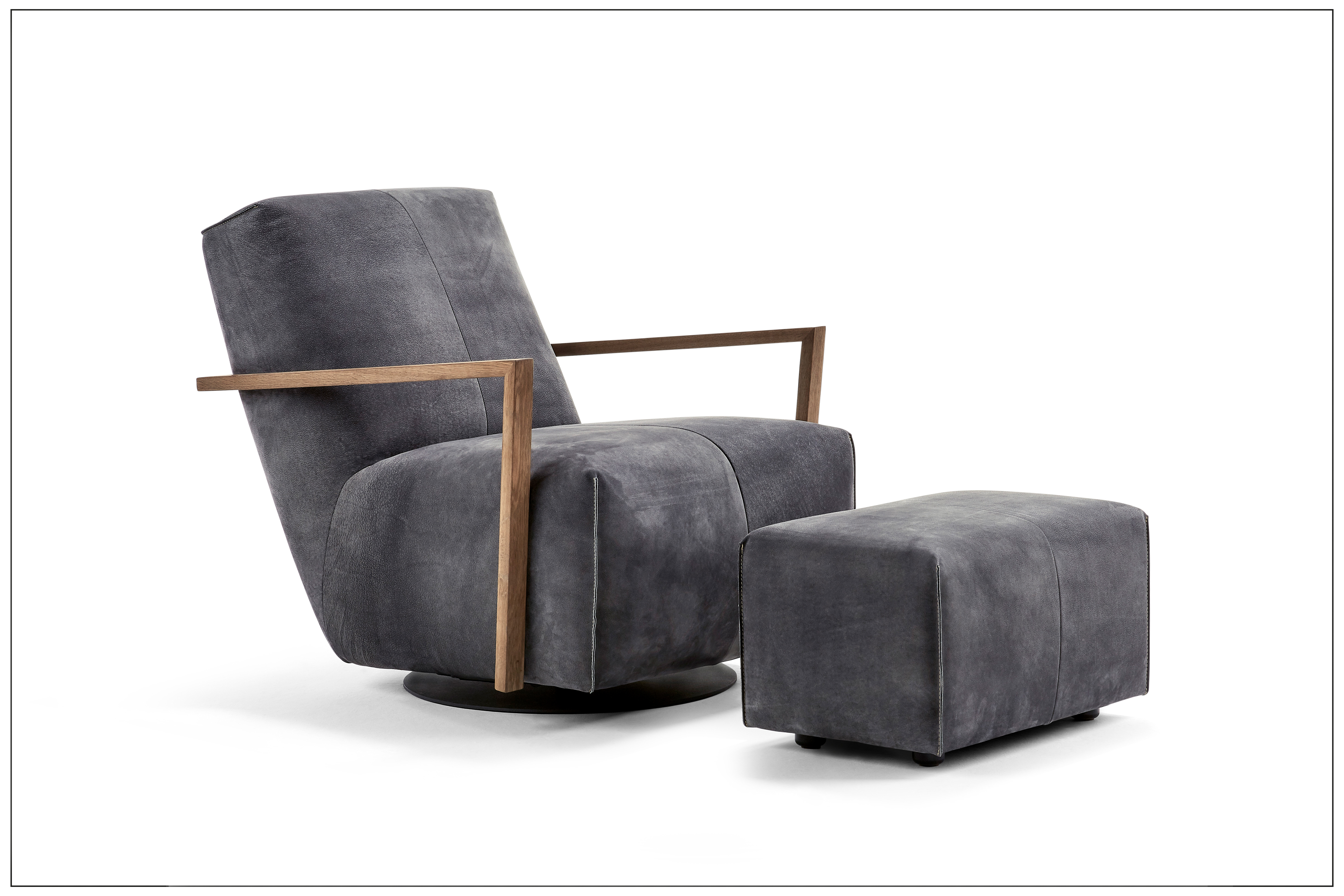 PASSION FOR STYLE. DREH- UND SCHAUKELSESSEL MIT ELEGANTEM MATERIALMIX UND 360° DREHFUNKTION. LEICHTE, FILIGRAN GEARBEITETE ARMTEILE, WAHLWEISE AUS HOLZ, METALL ODER BEZOGEN. AUF WUNSCH MIT PASSENDEM HOCKER. FUSSPLATTE AUS METALL, SCHWARZ MATT, FEINSTRUKTUR PULVERBESCHICHTET. HOLZARTEN, BEZÜGE (STOFF/LEDER) UND NAHTVERARBEITUNG WÄHLBAR. ALS UNIKAT GEFERTIGT.