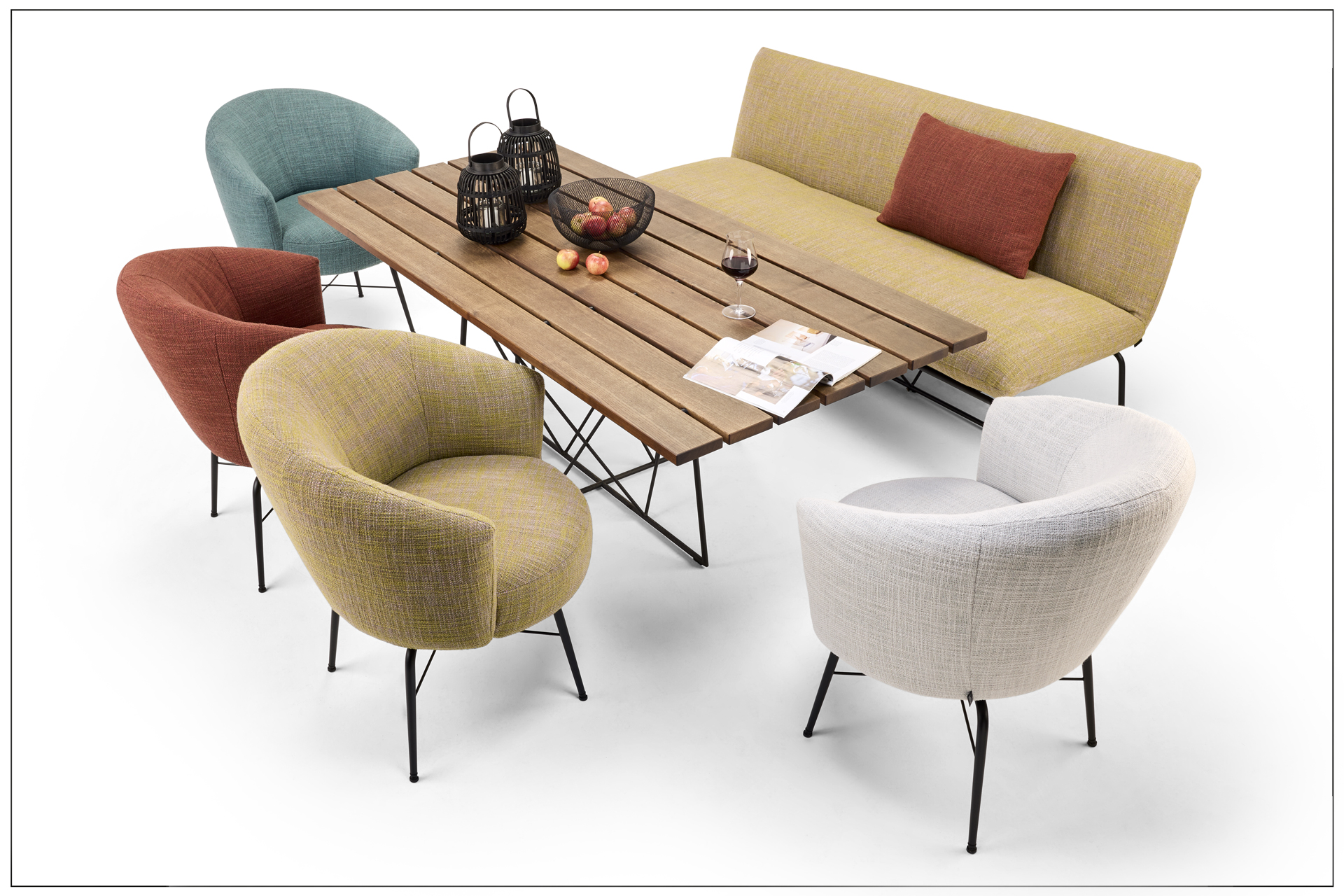 DINING LUXURY. DESIGN, KOMFORT UND OPULENZ. DREHBARE SITZE MIT DEM ARMLEHNKOMFORT EINES SESSELS IM MIX MIT DER DINNG BANK, SOWIE DIE TAFEL AUS ECHTHOLZ GEBRETTERT UND GRAZILEM STAHLDESIGN. MATERIAL, FUNKTION UND HANDWERKSKUNST AUS EINEM GUSS. CHARMANT VERFÜHRERISCHE OUTDOOR TEXTILIEN IN BESTER QUALITÄT STEHEN FÜR DIE BESONDERE BULLFROG COUTURE. EINFACH NUR BESITZEN, WOHLFÜHLEN UND GENIESSEN. EIN ECHT KREATIVES PRODUKT VON BULLFROG. ALS UNIKAT GEFERTIGT.