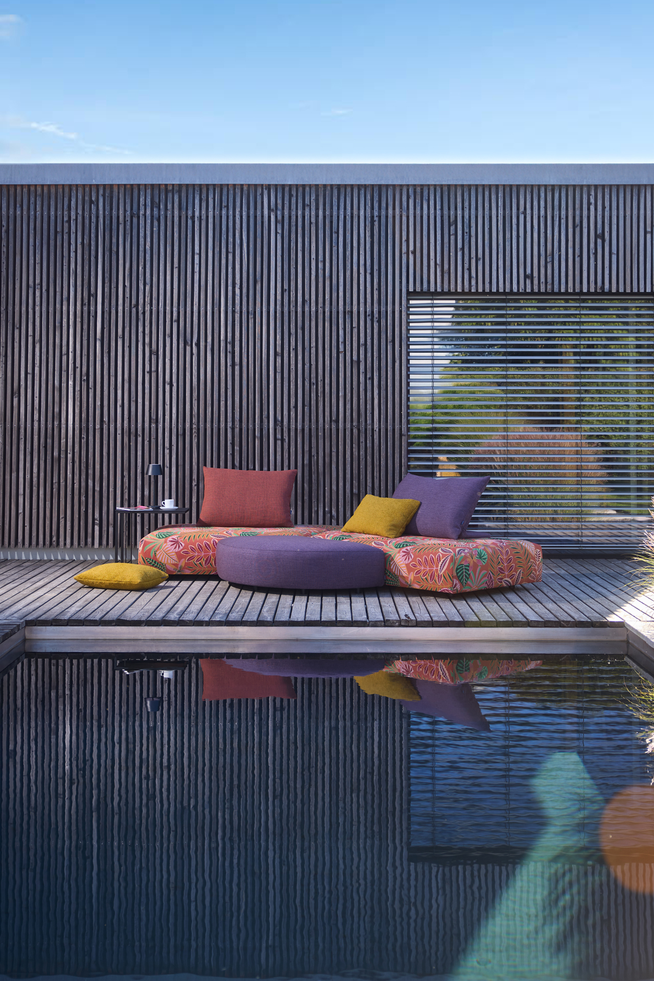 THE CREATIVE LOUNGE. DRAUSSEN NEU ERLEBEN – ALLEIN ODER ZU ZWEIT. EIN LIEBLINGSPLATZ, SINNLICH UND PURISTISCH ZUGLEICH. OB ALS SOLITÄR ODER ALS ECK-ENSEMBLE. DIE KREATIVEN SITZ- UND LIEGEELEMENTE SIND VIELSEITIG KOMBINIERBAR. STILPRÄGEND SIND ZUDEM DIE AUFSTELLBAREN FUNKTIONSKISSEN IN UNTERSCHIEDLICHEN GRÖSSEN. VIELFÄLTIGE AUSWAHL AN OUTDOOR TEXTILIEN. DAZU PASSEND: WIND- UND REGENFESTE ABDECKHÜLLE. AUCH ALS INDOOR VARIANTE ERHÄLTLICH.