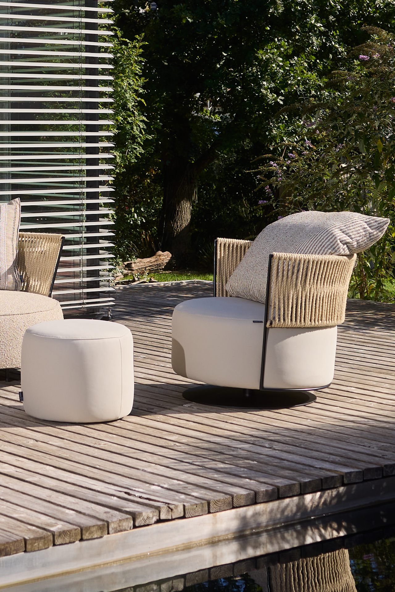 FOREVER YOUNG. DREH-SCHAUKELSESSEL. KUNSTHANDWERK, ÄSTHETIK UND FUNKTION IN EINEM SESSEL VEREINT. IDEALE ERGÄNZUNG ZU LAGOON, ISOLA ODER MIU. EIN DESIGN ZUM VERLIEBEN. OUTDOOR TEXTILIEN UND NAHTVERARBEITUNG WÄHLBAR. DAZU PASSEND: WIND- UND REGENFESTE ABDECKHÜLLE. AUCH ALS INDOOR VARIANTE ERHÄLTLICH. ALS UNIKAT GEFERTIGT.