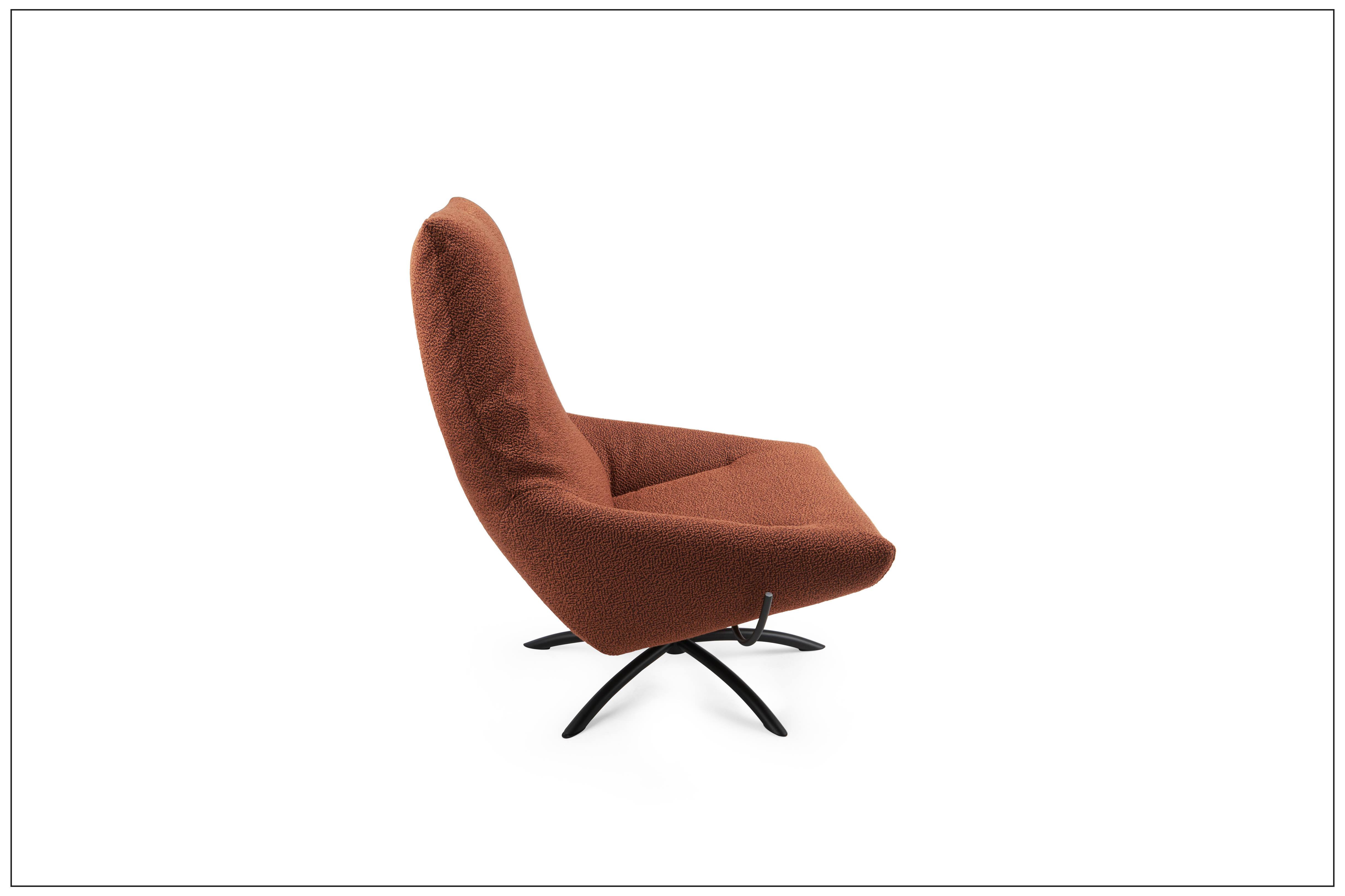 TAKE IT EASY. FILIGREE DESIGN WITH INTEGRATED ARMRESTS. COMFORT HEADREST AND COMFORT SEAT WITH THIGH RELIEF. SEAT SHELL LOCKABLE IN ANY POSITION. OPTIONALLY WITH BASE PLATE OR CROSS FRAME, BLACK. COVERS AVAILABLE IN LEATHER OR FABRIC FROM OUR COLLECTION. UNIQUE PIECE PRODUCTION.