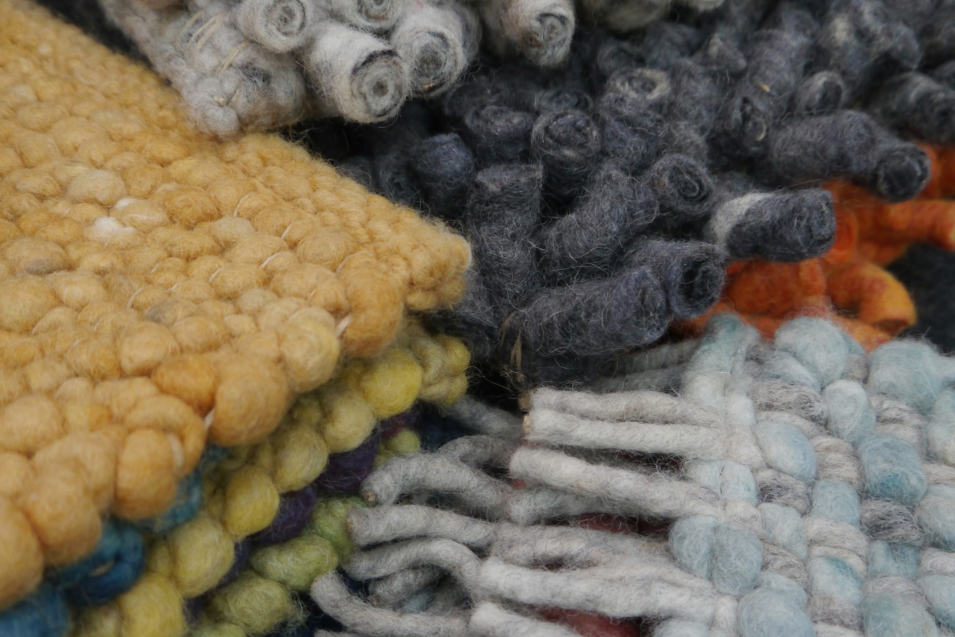 BEST QUALITY MADE FROM 100% VIRGIN SHEEP‘S WOOL. DURABLE AND EASY TO CARE FOR. ENVIRONMENTALLY FRIENDLY DYED YARNS WOVEN ONTO A JUTE WICK ENSURE STABILITY. EACH PIECE IS UNIQUE.