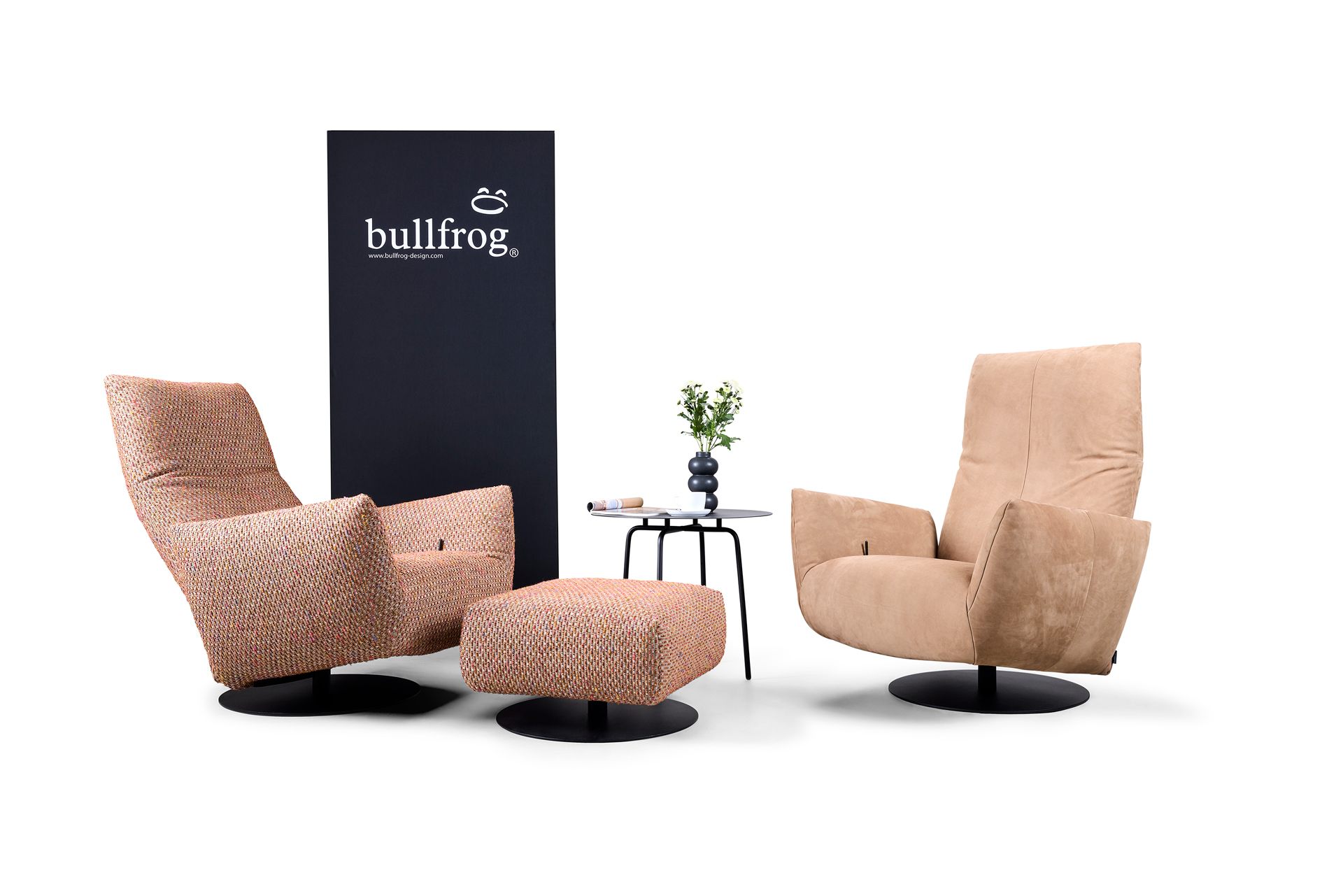 SOLITÄR WITH LUXURY FUNCTION. OUR NEW HIGH-BACK ARMCHAIR WITH 360° SWIVEL FUNCTION, A LUXURIOUS MANUALLY OPERATED ROCKING SYSTEM, AND A COMFORT BACKREST FOR INDIVIDUAL ADJUSTMENT OF THE RECLINE POSITION. IN ADDITION: THE SWIVELING ROCKING STOOL. PURE LUXURY. UNIQUE PIECE PRODUCTION.