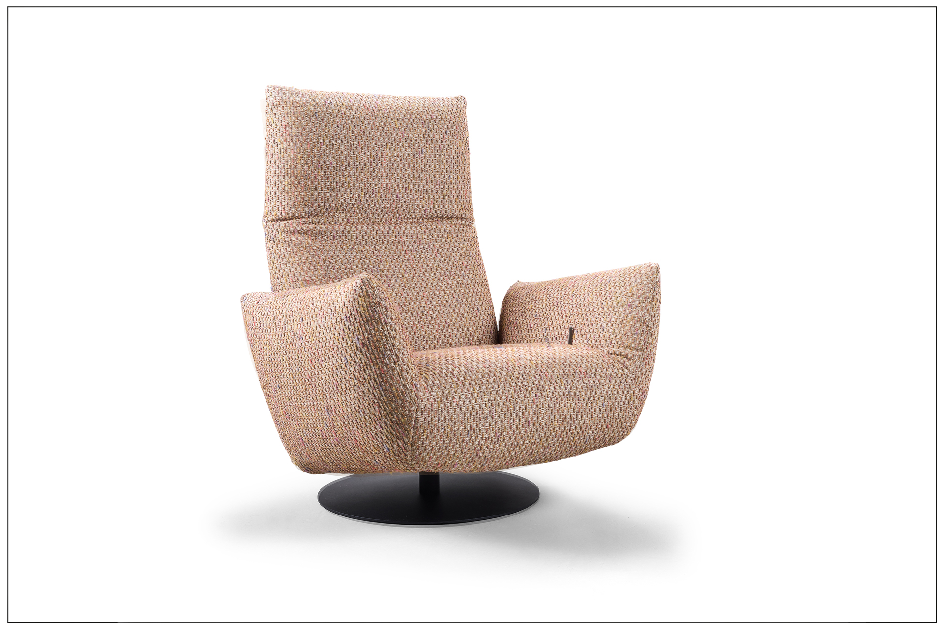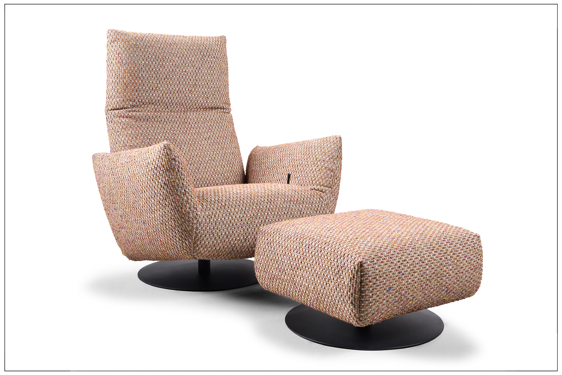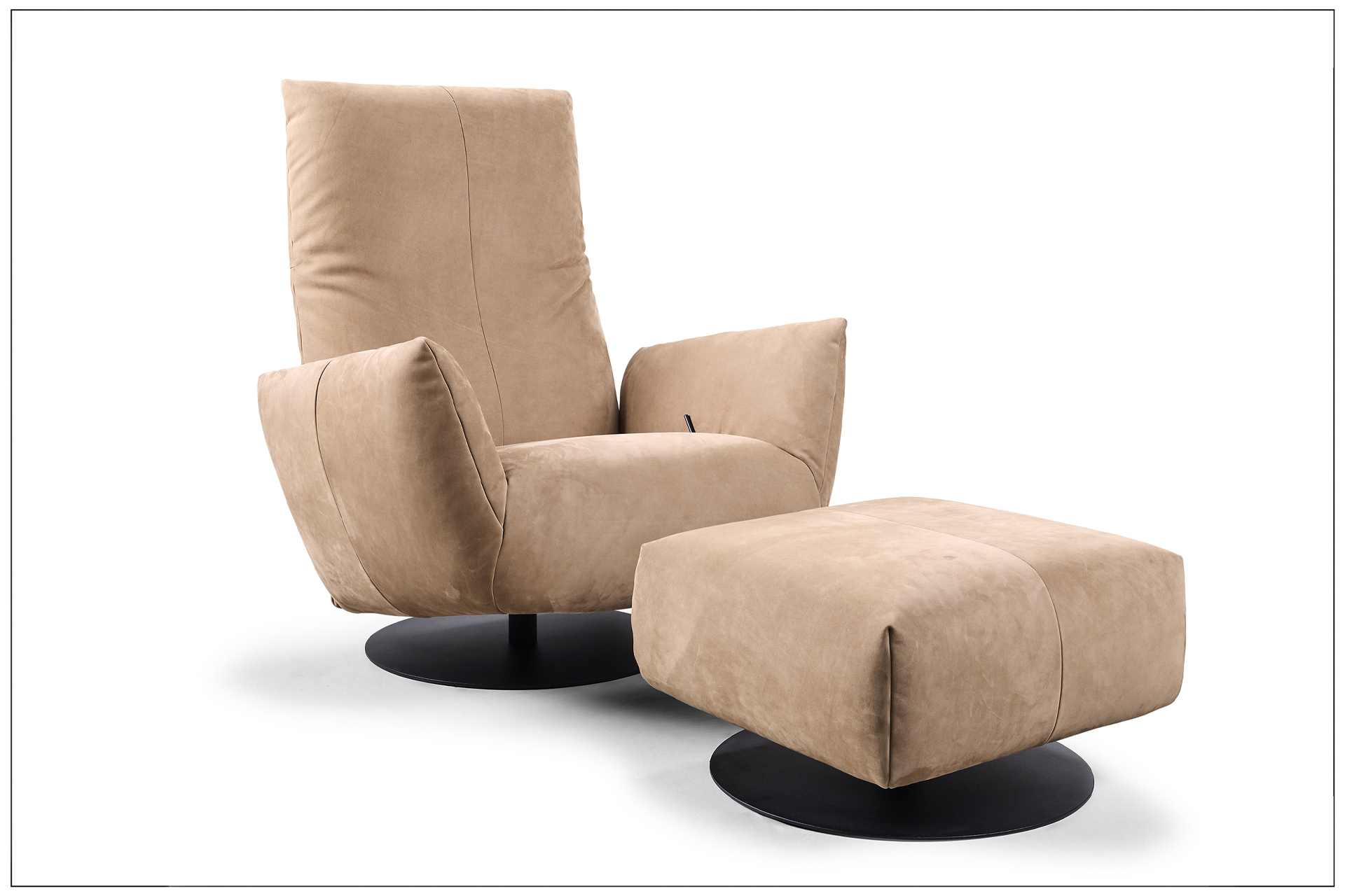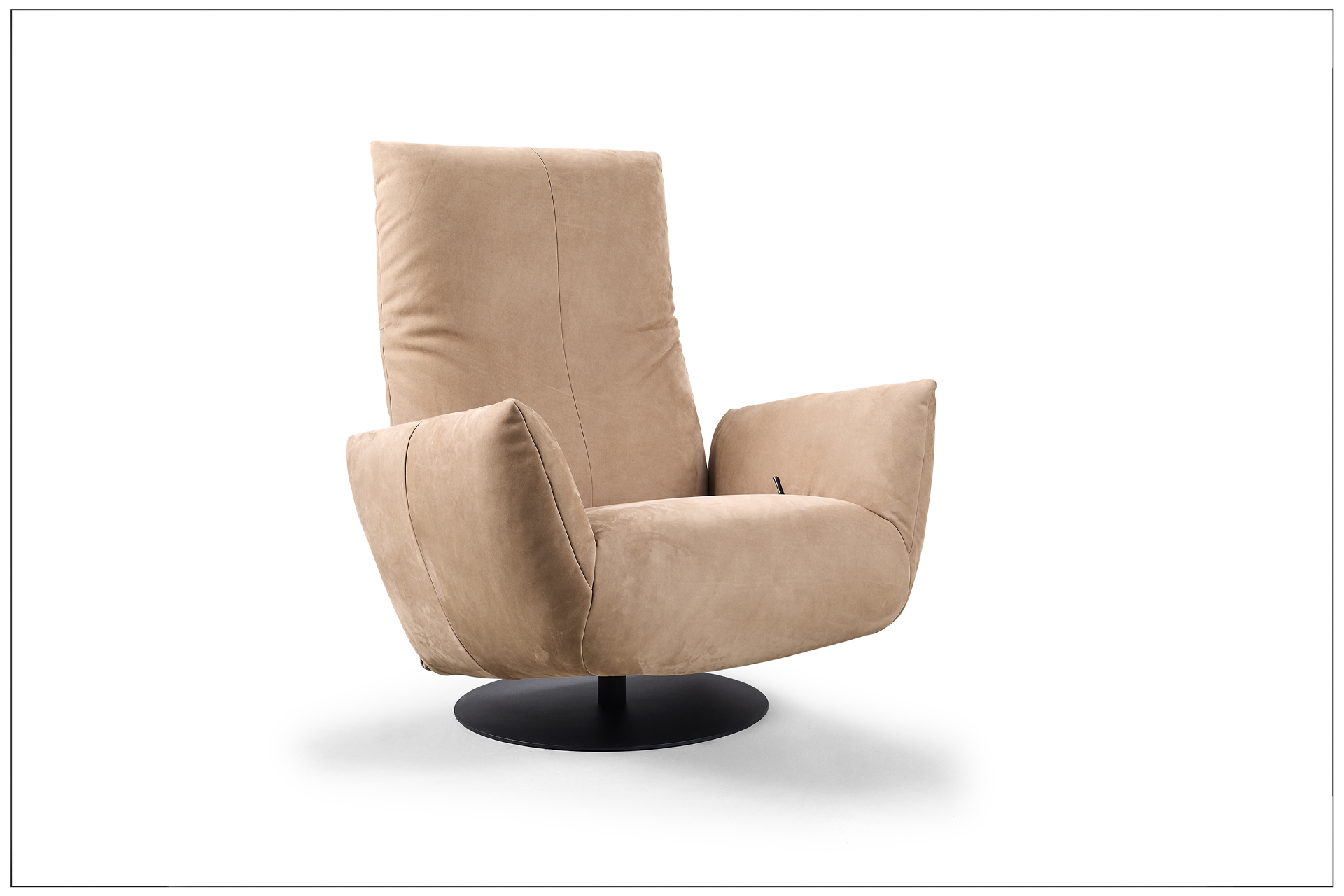 SOLITAIRE WITH LUXURY FUNCTION. UNSER NEUER HOCHLEHNSESSEL MIT 360° DREHFUNKTION, LUXURIÖSEM MANUELL BEDIENBAREM SCHAUKELSYSTEM UND KOMFORTRÜCKEN FÜR DIE INDIVIDUELLE EINSTELLUNG DER RÜCKENPOSITION. ZUSÄTZLICH DER DREHBARE SCHAUKELHOCKER. LUXUS PUR. ALS UNIKAT GEFERTIGT.