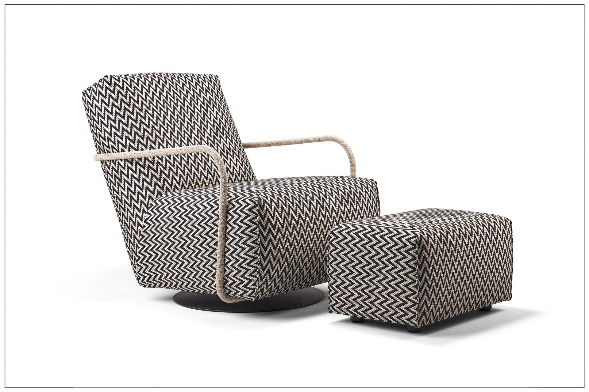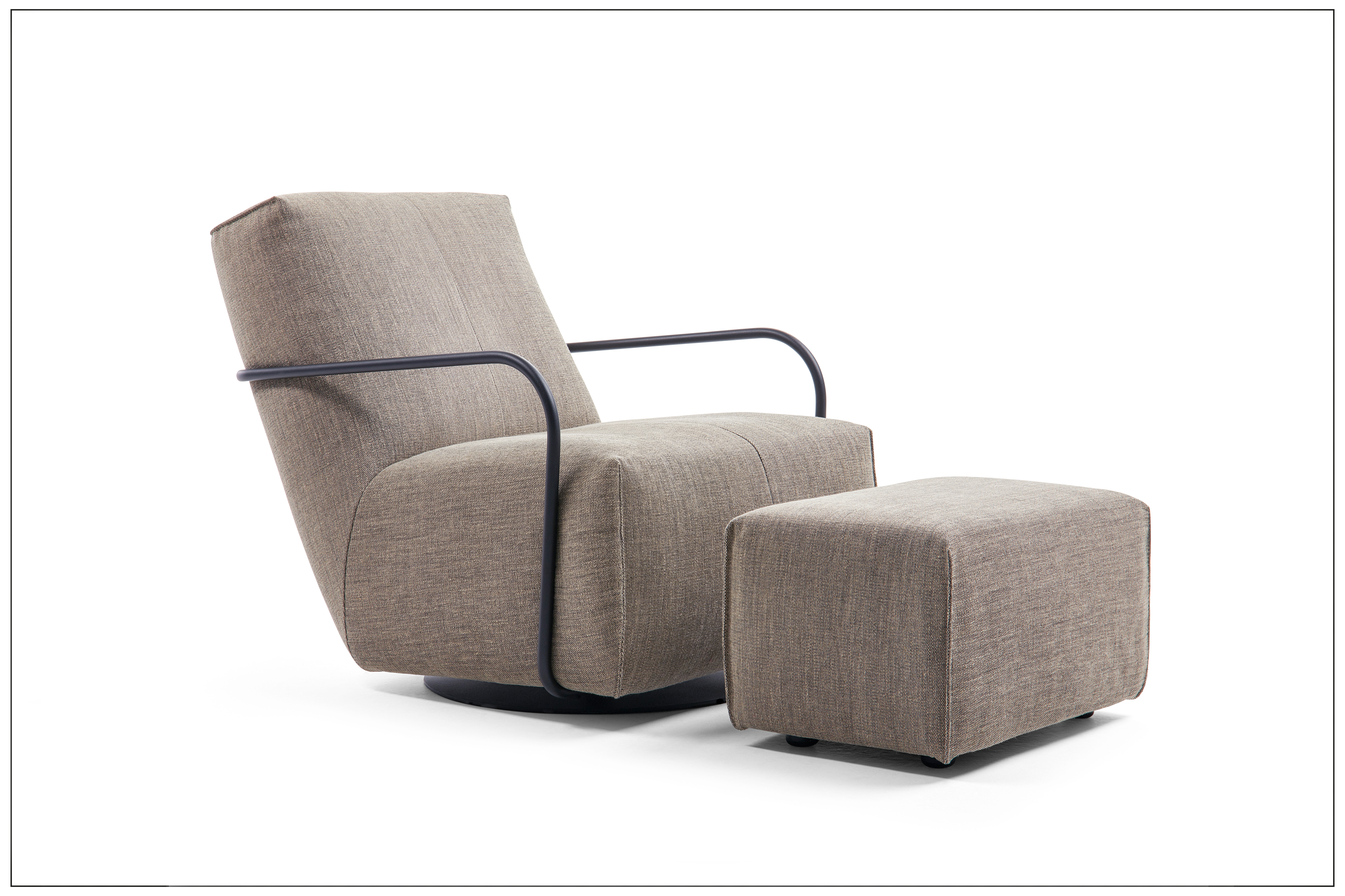 PASSION FOR STYLE. DREH- UND SCHAUKELSESSEL MIT ELEGANTEM MATERIALMIX UND 360° DREHFUNKTION. LEICHTE, FILIGRAN GEARBEITETE ARMTEILE, WAHLWEISE AUS HOLZ, METALL ODER BEZOGEN. AUF WUNSCH MIT PASSENDEM HOCKER. FUSSPLATTE AUS METALL, SCHWARZ MATT, FEINSTRUKTUR PULVERBESCHICHTET. HOLZARTEN, BEZÜGE (STOFF/LEDER) UND NAHTVERARBEITUNG WÄHLBAR. ALS UNIKAT GEFERTIGT.