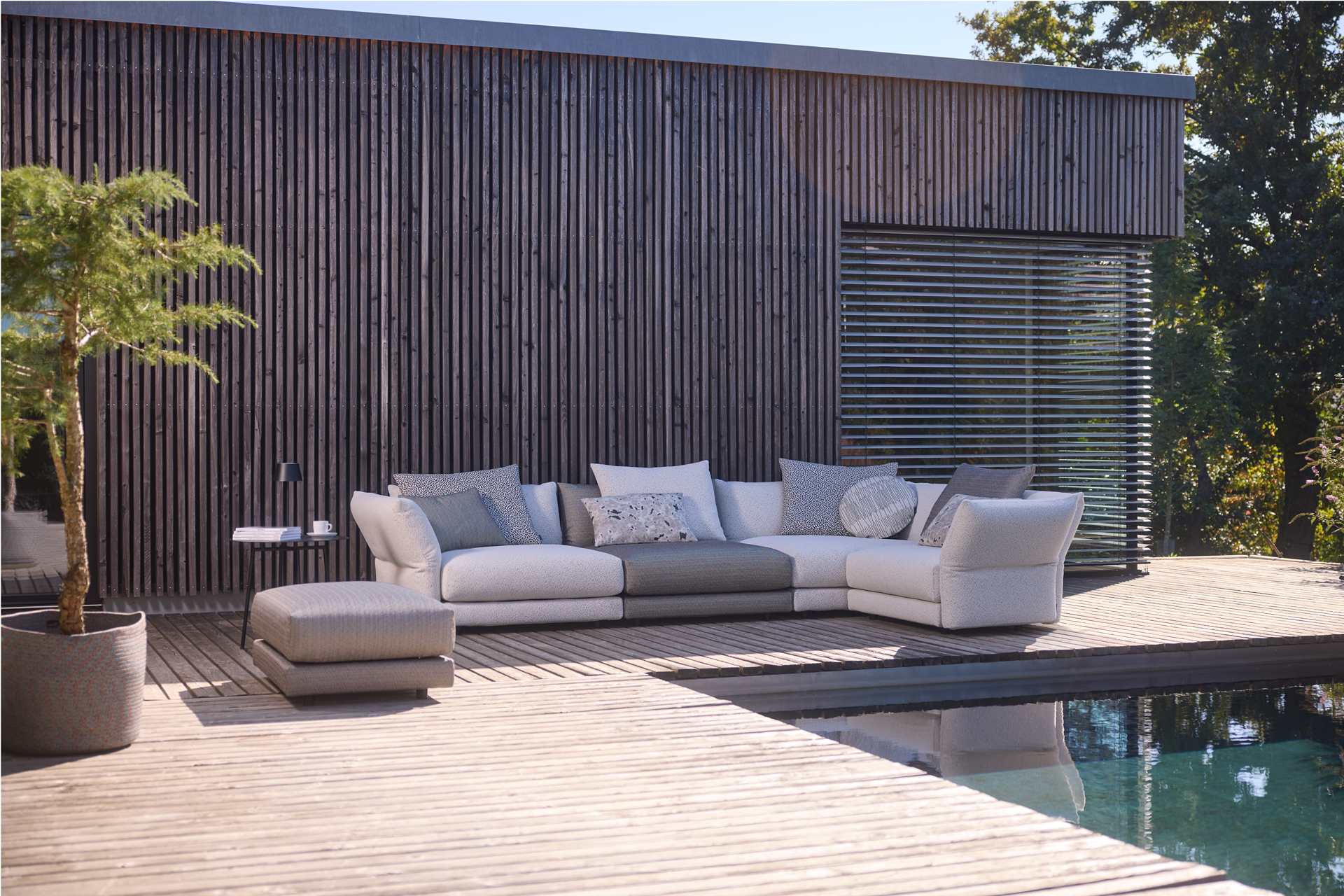 THE LUXURY RENDEZVOUS. DIE DREI LUXURIÖSEN DESIGN-ELEMENTE UNSERER BULLFROG OUTDOOR KOLLEKTION ERMÖGLICHEN WUNDERBARE WUNSCHKONFIGURATIONEN. ELEMENTE MIT FLEXIBLEN RÜCKEN UND ARMTEILEN SOWIE LOSE AUFLIEGENDE SITZKISSEN, ALLES IN SUPERSOFT KOMFORT. DIE REICHHALTIGE AUSWAHL VON OUTDOOR TEXTILIEN BIETET FÜR DIE INDIVIDUELLE GESTALTUNG VIELE MÖGLICHKEITEN. ALS UNIKAT GEFERTIGT!